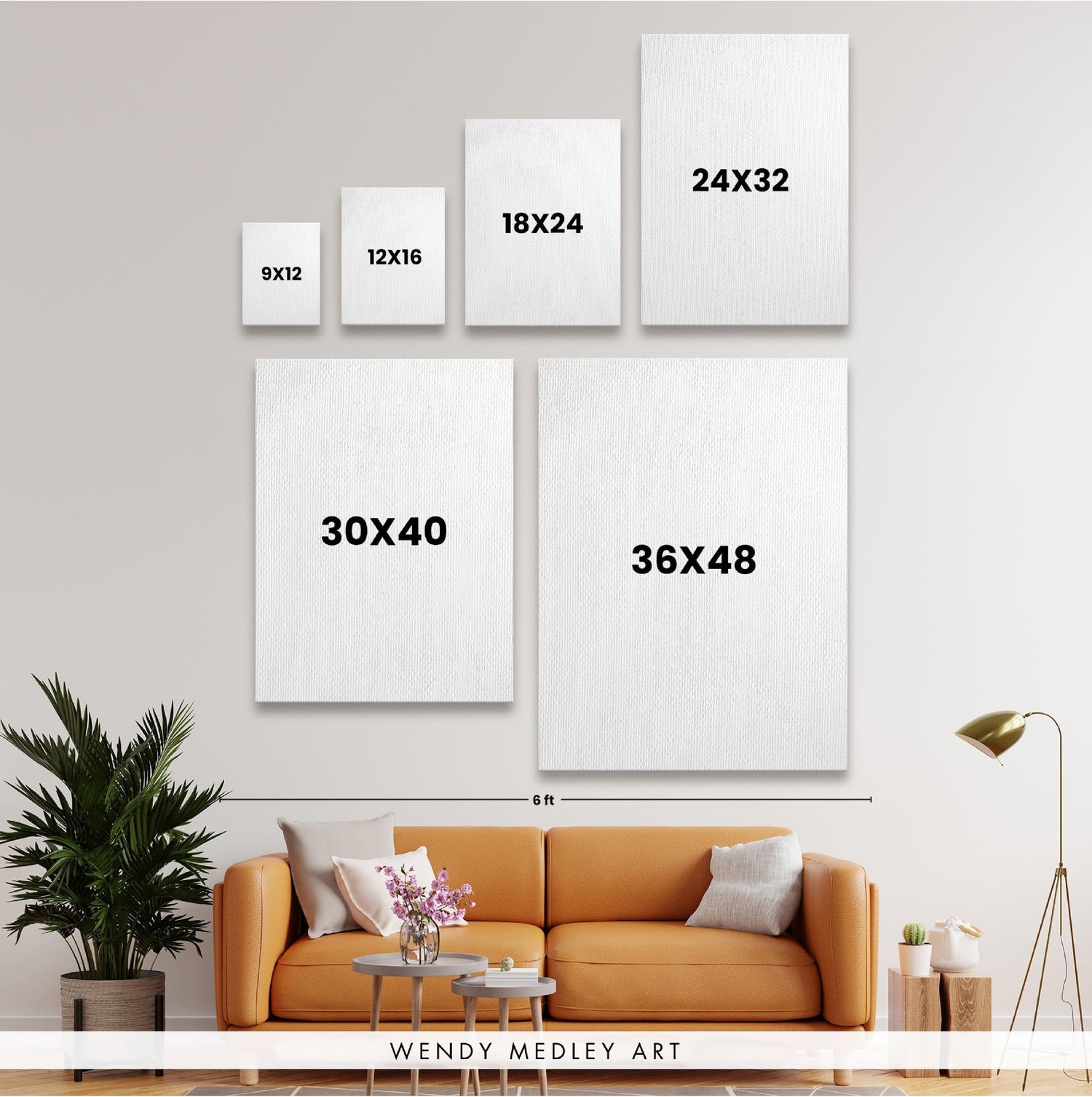 Purchase the suitable canvas print size for the space you want to decorate. It's important to ensure the aspect ratio fits your target location. Use the canvas reference picture to calculate the aspect ratio with the main sizes shown.